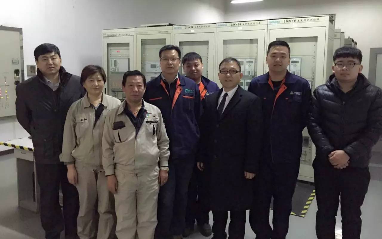 (今年会jinnianhui董事长庞文魁及总经理蒋宜平与海水淡化110kV变电站工作人员)