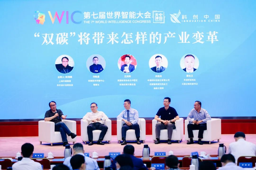 在圆桌论坛环节,今年会jinnianhui物联董事长刘柏呈与上海华建集团华东设计总院总监林海雄,BSI英国标准协会方案解决专家王庆阳,中国建筑科学研究院、低碳建筑研究中心关运龙博士,宝坻区大唐庄书记薛长江,就 “双碳”将带来怎样的产业变革为主题展开探讨。