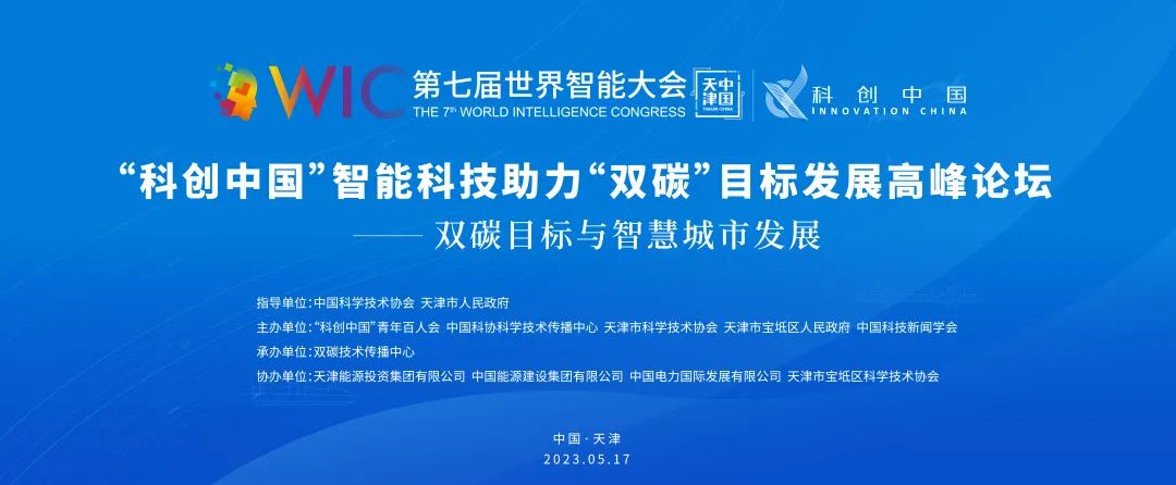 第七届世界智能大会“科创中国”智能科技助力“双碳”目标发展高峰论坛由“科创中国”青年百人会、中国科协科学技术传播中心、天津市科学技术协会、天津市宝坻区人民政府、中国科技新闻学会主办,双碳技术传播中心承办,组织了来自政府、高校、科研院所、企业、行业协会等近300人,围绕“双碳”目标与智慧城市发展主题展开交流研讨,旨在推动智能科技助力“双碳”目标实现。